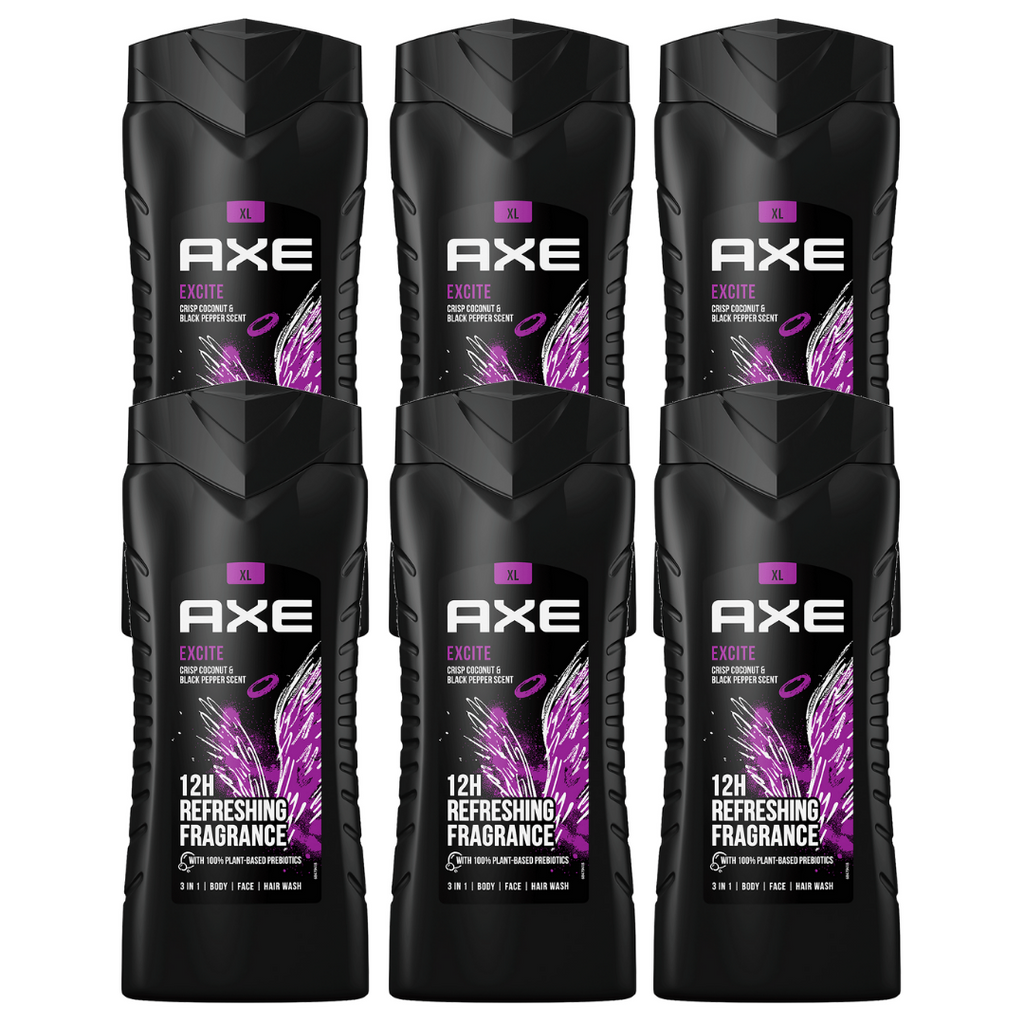 AXE XL 3-In-1 Wash, Excite Crisp Coconut & Black Pepper Scent, 400ml - Pack of 6