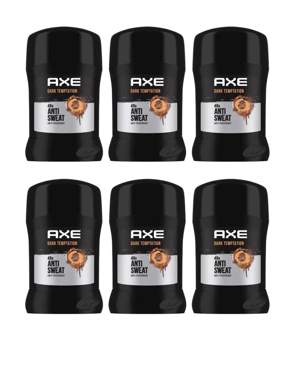 AXE Antiperspirant Stick for Men Dark Temptation Description: Be ready to give in to any temptation. Get a sensual blast of sweetness and spice that'll keep you on your toes. A subtle, sweet fragrance with a hint of spice. A blend of hot chocolate, amber and red peppercorn awaken the senses. 48-hour antiperspirant protection keeps you confidently fresh and dry. Apply a few strokes to washed and dried armpits. Wait a minute, get dressed and go!