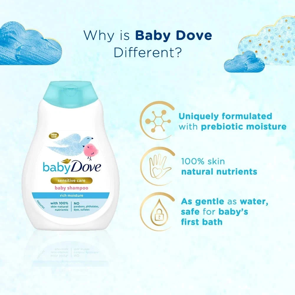 Give your baby’s delicate hair the care it deserves withBaby Dove Rich Moisture Baby Shampoo (200ml). Thisgentle, no-tears shampoocleanses effectively while helping retain your baby’s natural moisture. Enriched withprebiotic moisturizers, it nourishes and supports a healthy scalp microbiome.
