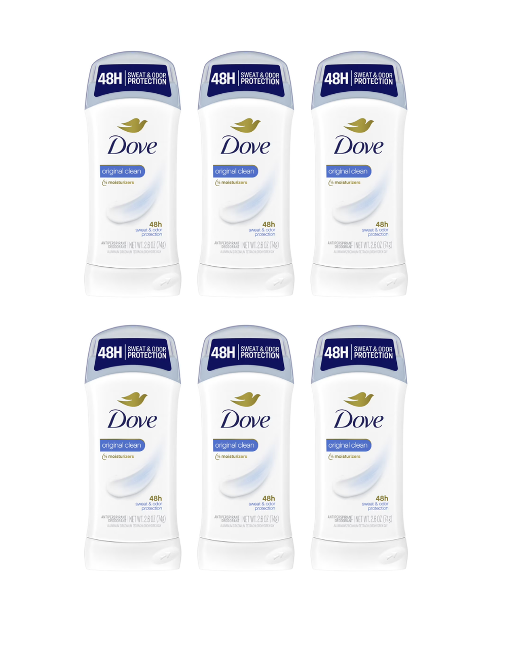 Dove Original Clean Antiperspirant Deodorant, 2.6 oz -Pack of 6